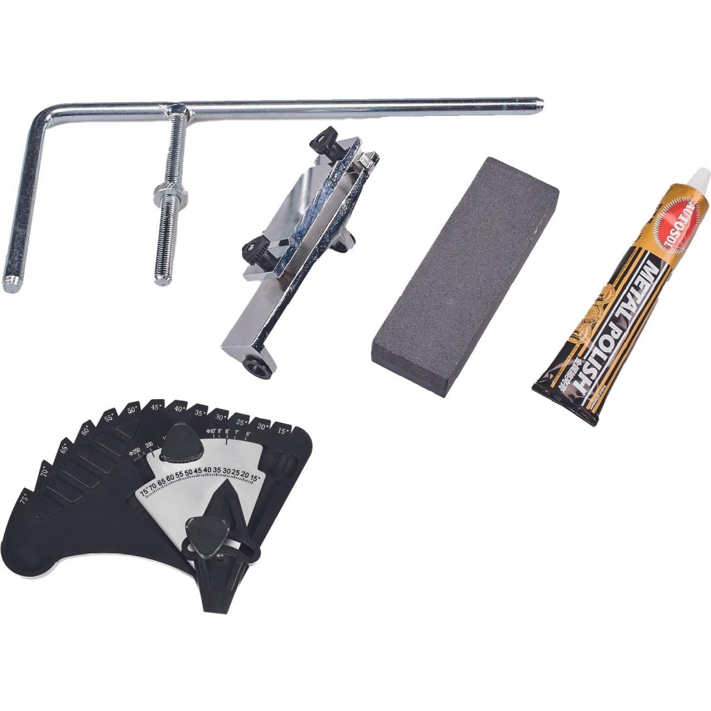 У комплекті з приладдямДо комплекту входять брусок для регулювання зернистості шліфувального круга, зачисна паста для полірування шкіряного круга та кутомір.