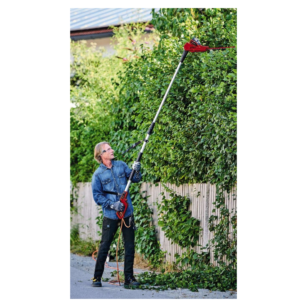 Einhell впорається з цим завданням. Телескопічний кущоріз для живоплоту - необхідний садовий інструмент для догляду за високими живоплотами та кущами. Навіщо підніматися на драбину, якщо стригти живопліт можна з землі? Для безпечного транспортування та чистого зберігання в комплект поставки входить практичний захисний чохол для ножа кущоріза.