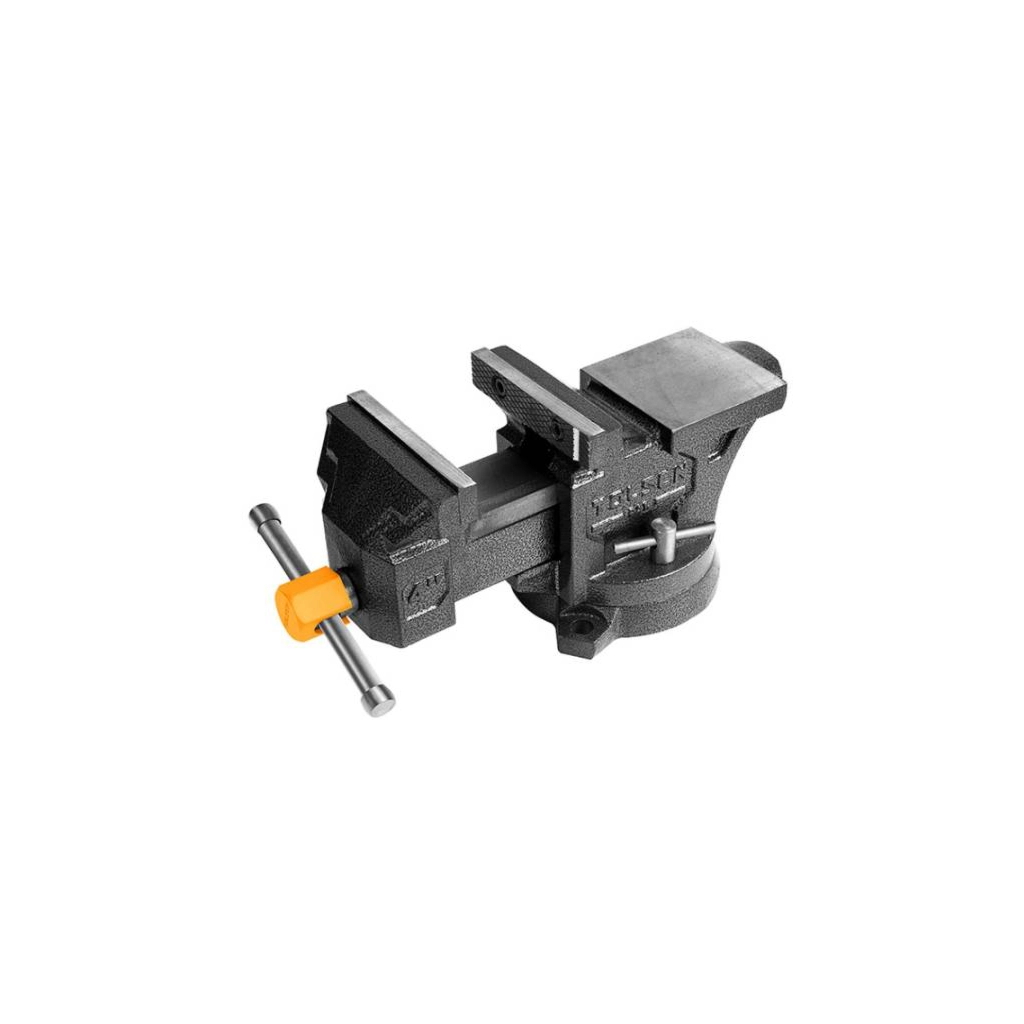 Лещата поворотні 200 мм з ковадлом Tolsen – це високоякісний інструмент професійного рівня, призначений для надійного фіксування деталей під час виконання різноманітних слюсарних, монтажних та будівельних робіт. Міцна конструкція виготовлена зі стійкого до зносу чавуну, що забезпечує тривалу експлуатацію та стійкість до механічних пошкоджень. Поворотна база дозволяє обертати лещата на 360° для зручності роботи під будь-яким кутом. Робоча ширина губок становить 200 мм, що дозволяє фіксувати деталі різного розміру. Максимальне зусилля стискання – 15 кН. Інструмент також обладнаний вбудованим ковадлом для виконання додаткових слюсарних операцій, таких як формування та вирівнювання металу.