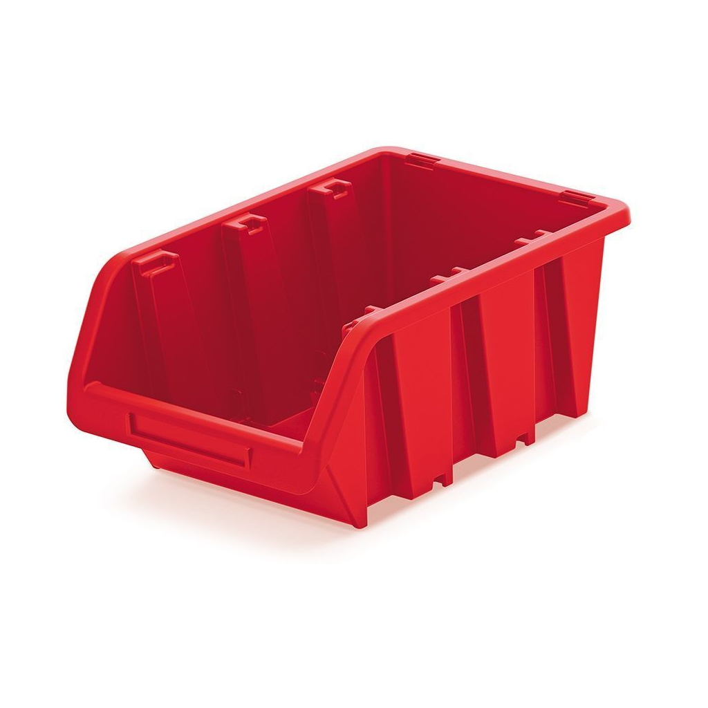 Ємність для зберігання має корпус, виготовлений із міцної полімерної суміші, червоного кольору.