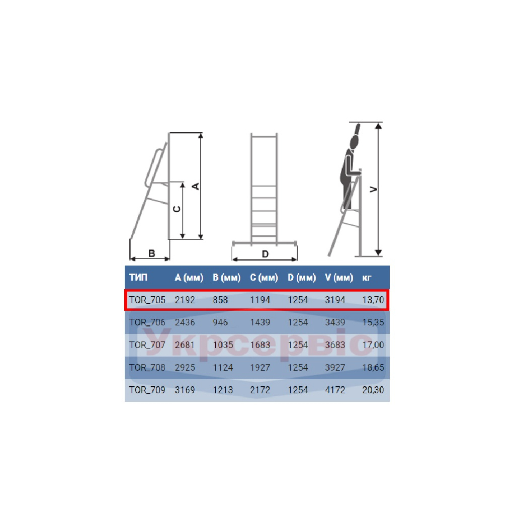 Драбина ELKOP cтремянка-помост 5сх. верхя сходинка-1,2м (TOR 705)