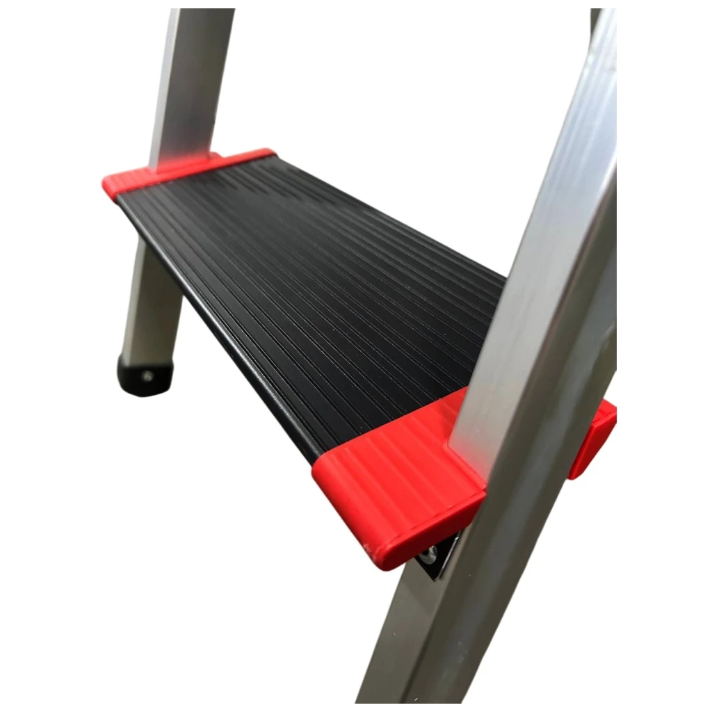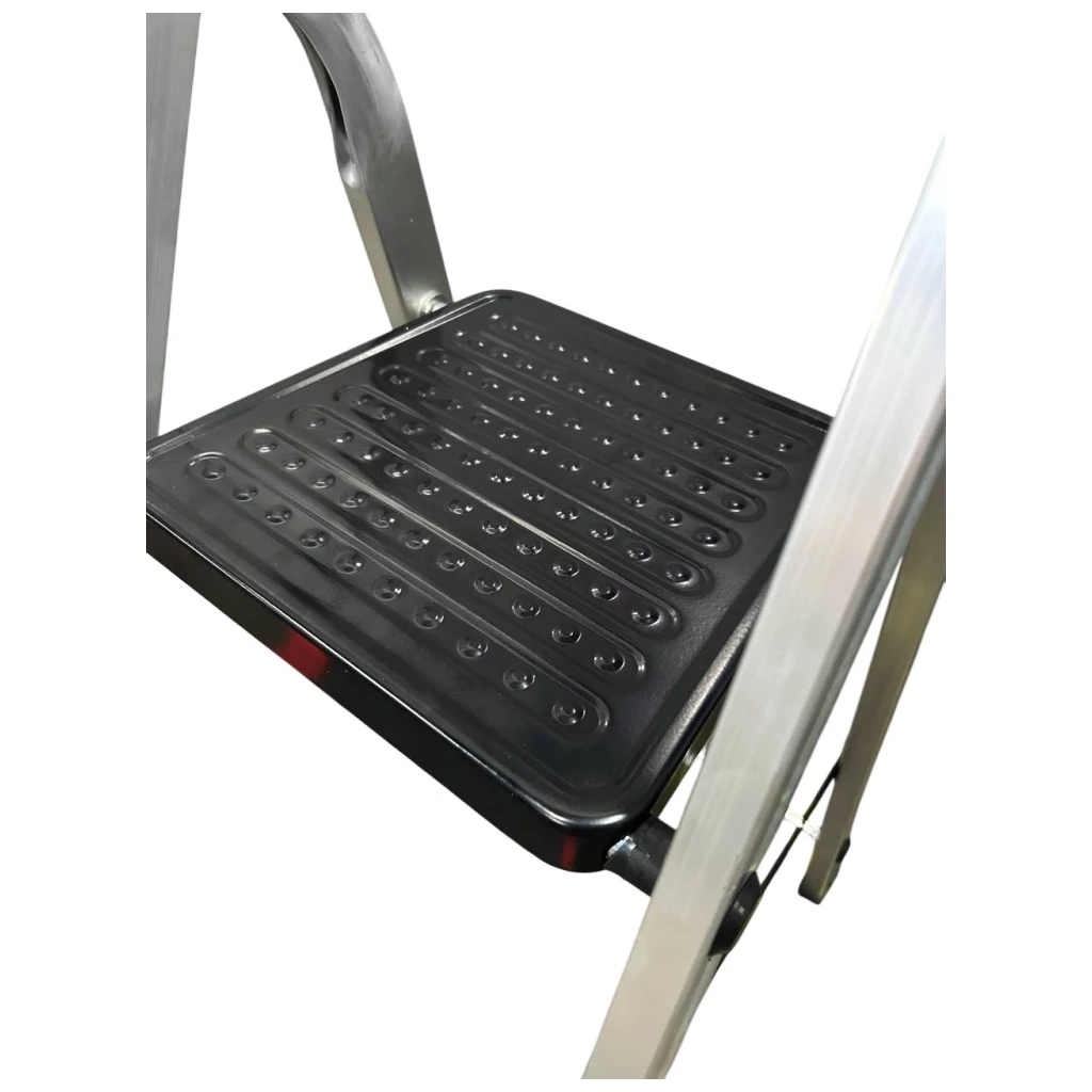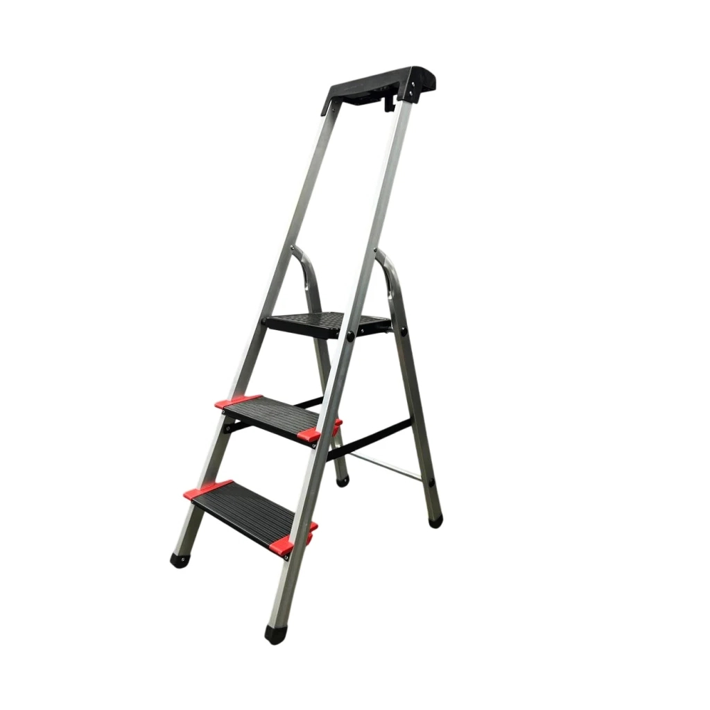 GTM KMH0103BP - компактна алюмінієва драбина у формі односторонньої стрем'янки, яка чудово підходить як для побутового, так і для професійного використання. У даній моделі драбини 3 сходинки і максимальна висота до верхньої сходинок 63 см.