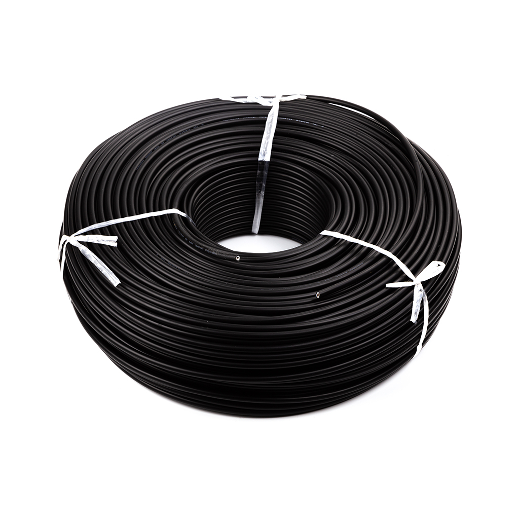 Чорний циліндричний кабель 1x4 мм² призначений для використання в сонячних електростанціях. Стійкий до ультрафіолету, має високі показники надійності та довговічності.