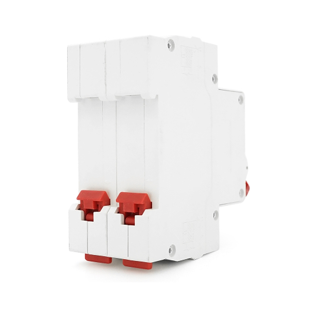 - Спеціалізація на постійному струмі: вимикач оптимізований для ефективного гасіння електричної дуги в ланцюгах постійного струму високої напруги, де вимоги до захисту вищі, ніж у ланцюгах змінного струму. - Двополюсне виконання: дозволяє одночасно розривати обидва провідники (наприклад, «+» і «-»), забезпечуючи повну ізоляцію ділянки ланцюга, що захищається. - Надійна комутація: номінальна здатність відключення 6 кА гарантує, що апарат зможе безпечно розірвати ланцюг навіть при значному струмі короткого замикання. - Візуальний контроль стану: наявність індикаторного вікна забезпечує швидке визначення положення контактів («ввімкнено»/«вимкнено»). - Спрощений монтаж: стандартне кріплення на DIN-рейку 35 мм прискорює та здешевлює установку в електрощиті.