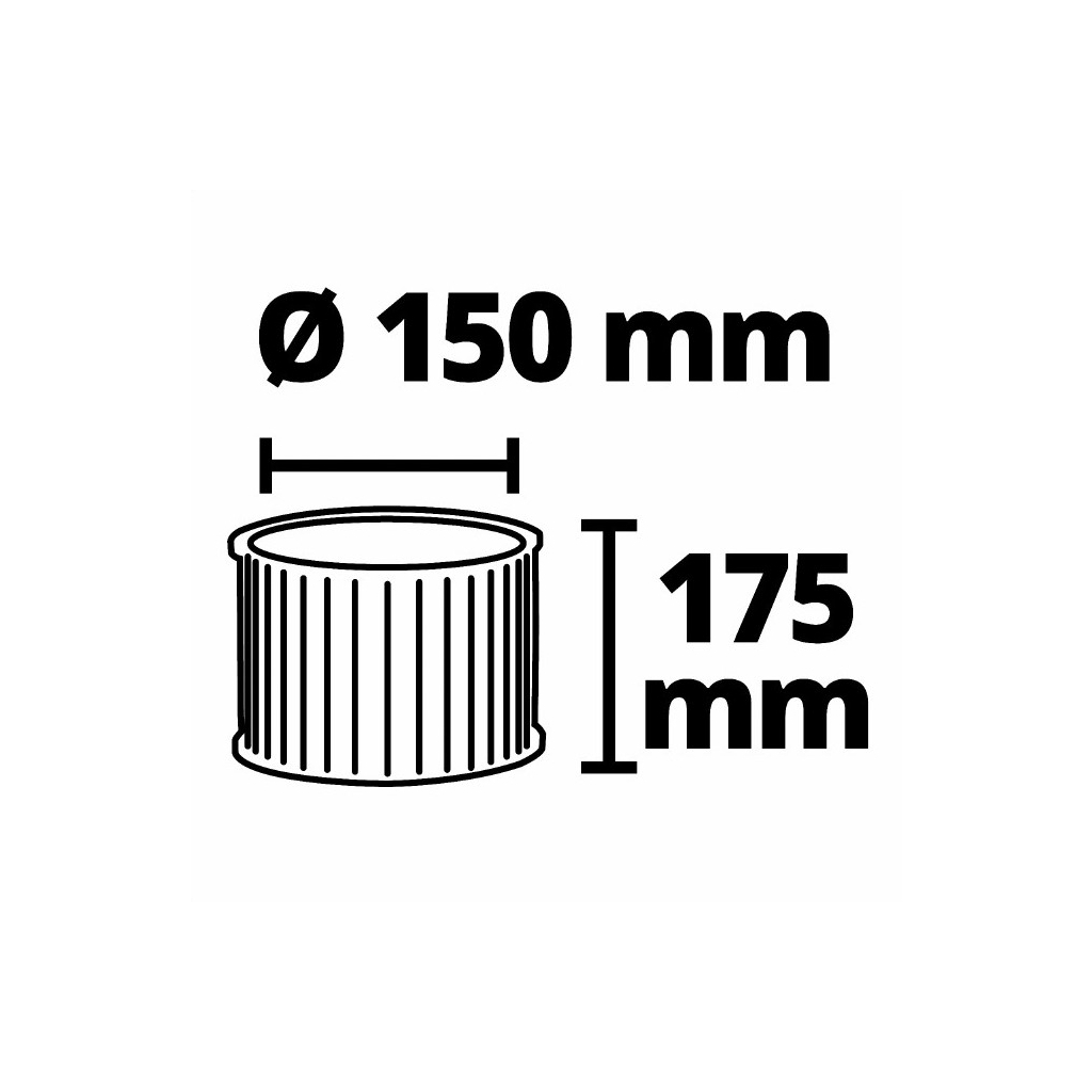 Гофрований картріджний фільтр класу L для сухого прибирання Einhell одягається на всмоктувальну кошик пилососів Einhell і захищає двигун пилососа від попадання пилу. Діаметр фільтра 150 мм, висота фільтра 175 мм. Характеристики
