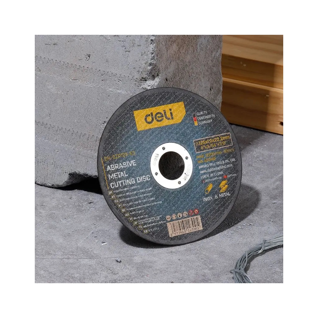 Абразивний металевий відрізний круг Deli_Tools EDH-SZP125-E3 забезпечує точність та ефективність для різання металу і нержавіючої сталі. Дизайн із плоским центром гарантує стабільність і легкість у використанні, а легка й міцна конструкція робить його надійним вибором. Упакований із простою етикеткою, що додає зручності для професіоналів і майстрів-аматорів.Характеристики