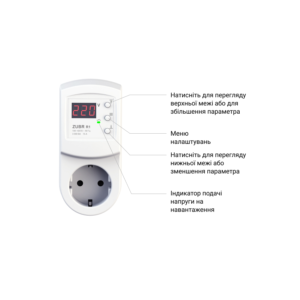 Керуйте реле легко за допомогою всього трьох кнопок, блокування яких запобігає випадковій зміні налаштувань. Це корисне для сімей з дітьми або в громадських місцях. Оберіть ZUBR R116y для впевненості в стабільній роботі вашої електроніки.