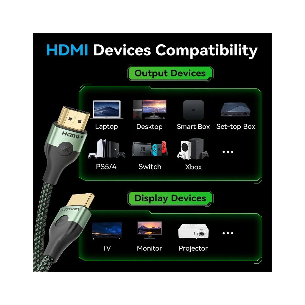 Кабель мультимедійний HDMI M to HDMI M 2.0m 8K60Hz cotton braided black Vention (AAUBH)