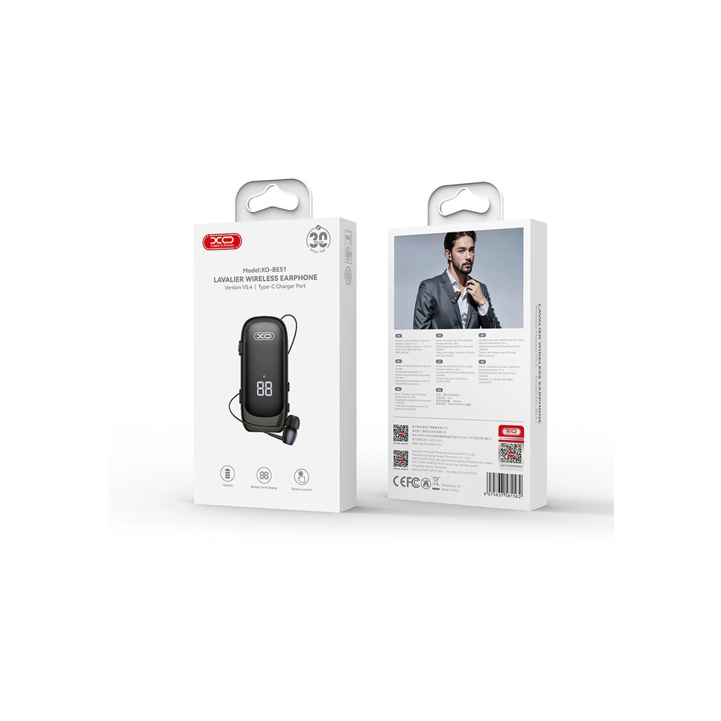 BE51 від XO - це компактна бездротова гарнітура з витяжним навушником. Корпус із прищіпкою забезпечує зручність використання.