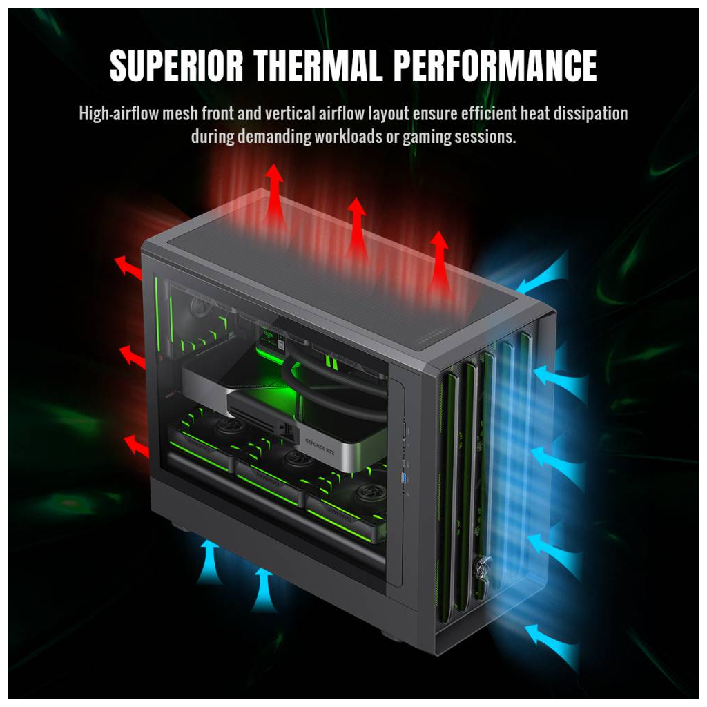 Особливості: | з вертикальним встановленням відеокарти |