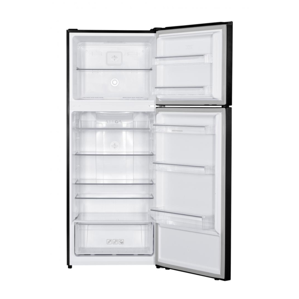 Цей холодильник також характеризується продуманою організацією внутрішнього простору: чотири скляні полиці у холодильному відділенні, полиця для пляшок на дверях, три дверні корзини та спеціальний контейнер для овочів. Морозильна камера з трьома відділеннями дозволяє зберігати до 4,4 кг продуктів за добу без побоювань за збереження їх якості.