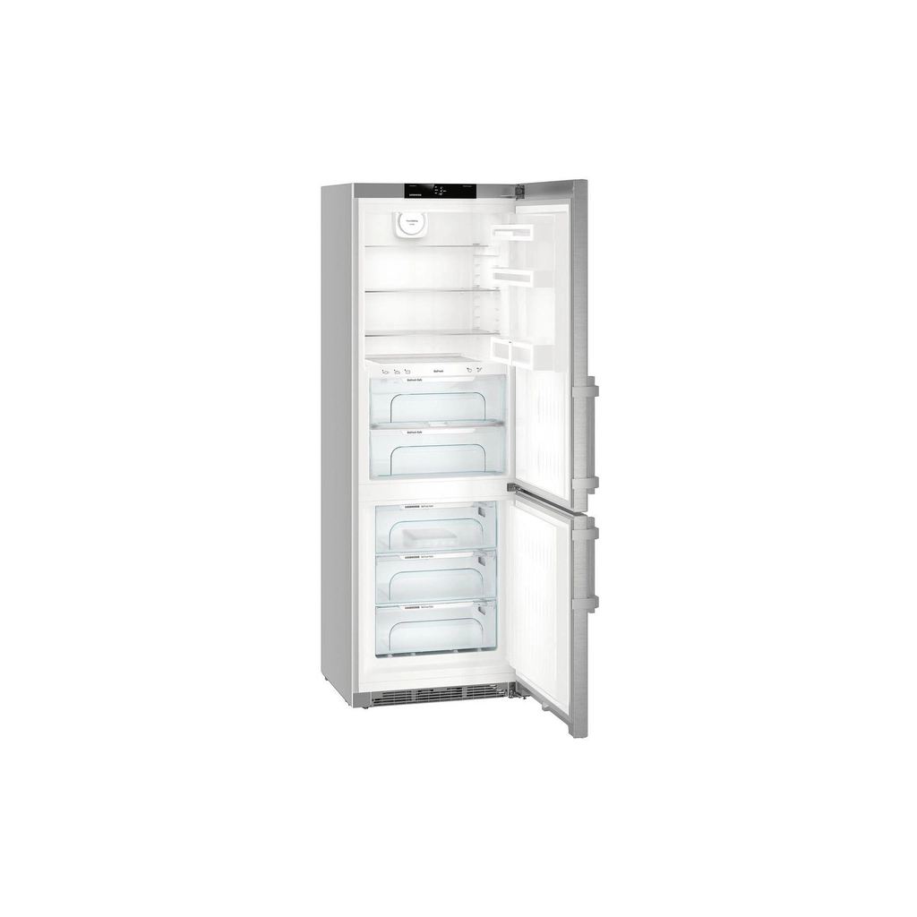Холодильник Liebherr CBNef 5735 (CBNEF5735) – справжній витвір інженерного мистецтва, створений для вашого комфорту і збереження продуктів на найвищому рівні. Він поєднує в собі розкішний сріблястий колір із покриттям SmartSteel, що не тільки додає стильності вашій кухні, а й дозволяє легко доглядати за поверхнями, запобігаючи появі відбитків пальців. Цей окремостоячий агрегат демонструє гнучкість у встановленні, інтегруючись до будь-якого інтер'єру без компромісів. Двокамерна конструкція сприяє раціональному зберіганню продуктів у загальному об’ємі 434 літри, де на холодильну камеру припадає 275 літрів. Власники оцінять 4 міцні полиці із загартованого скла, що легко витримують великі навантаження. Для звільнення простору передбачені дверні корзини та спеціальна полиця для пляшок, а для зберігання вітамінів – 2 контейнера для овочів.
