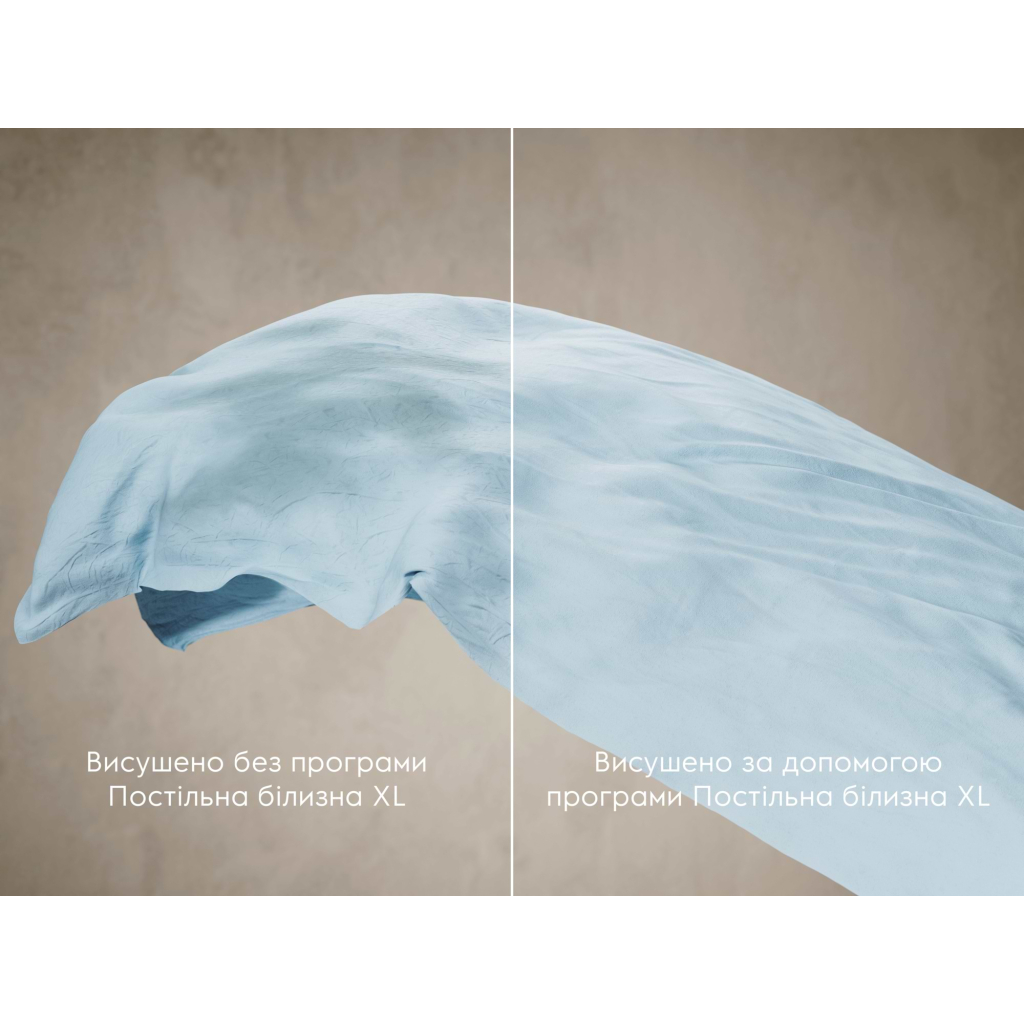 Швидкий режим: делікатне сушіння до 4 кг білизни за 75 хвилин.* Якщо вам потрібно швидко висушити одяг, скористайтеся ефективною програмою QuickCare. Вона забезпечить делікатне та рівномірне сушіння до 4 кг вашого улюбленого одягу за 75 хвилин. Оптимальне рішення для легких та делікатних тканин. Технологія MixCare забезпечує потужне та водночас дбайливе сушіння виробів із бавовни та синтетики, гарантуючи рівномірне сушіння змішаної білизни без потреби в сортуванні. Збережіть одяг як новий довше, заощаджуючи енергію та час. Датчики DryAssist вимірюють температуру та вологість кожного завантаження і регулюють сушіння, щоб запобігти пересушуванню та не допускати недостатнього висушування одягу. Програма Bedlinen XL забезпечує рівномірні результати сушіння для XL-завантажень, включно з комплектами постільної білизни, без потреби перезапускати сушильну машину. Фільтр EasyClean легко очищається та забезпечує високоякісну роботу вашої машини, сприяючи її енергоефективності.