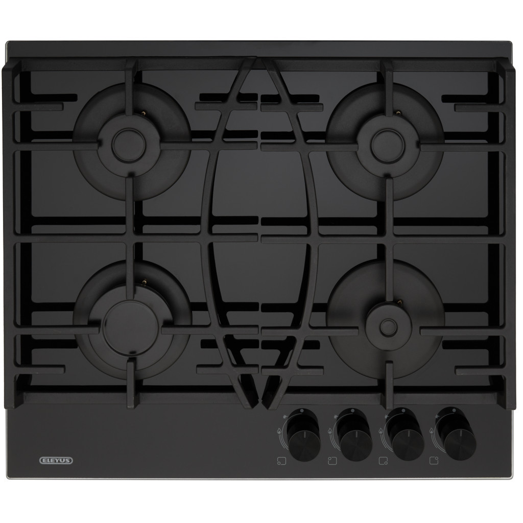 ELEYUS LIRA 60 CF — газова варильна поверхня особливого дизайну. Міцні чавунні решітки гарантують стійке розміщення і дають змогу використовувати посуд різних розмірів.Загартоване скло ідеальне в інтер'єрі та побуті