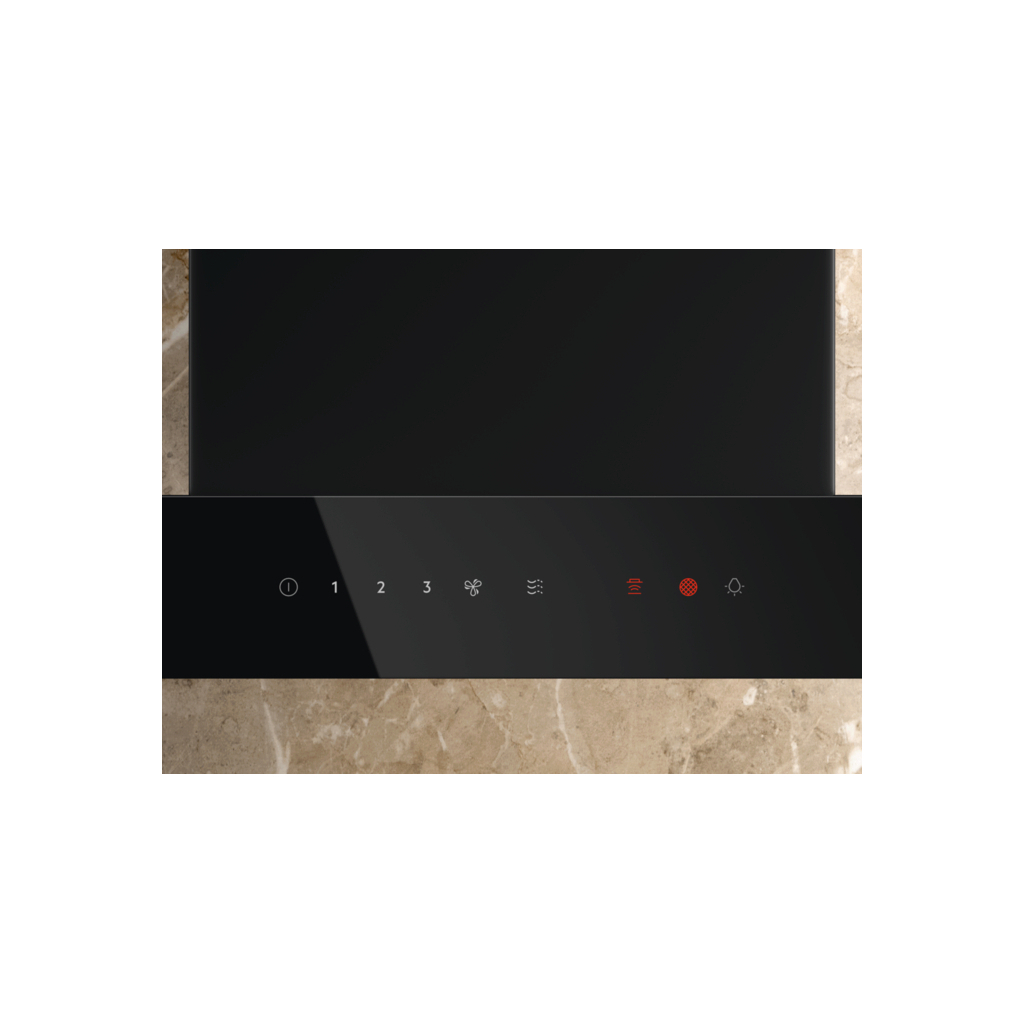 Тип керування – сенсорний, монтаж – пристінний, а серед особливостей – індикатор заміни фільтра та функція hob2hood.