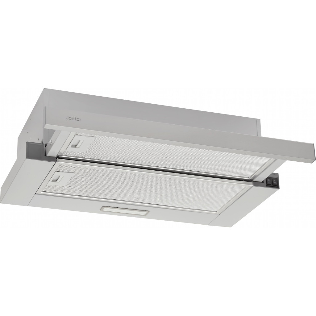 Вбудована телескопічна витяжка, режим роботи відведення, продуктивність 650 куб.м/год, 2 швидкості, приховане кнопкове управління, світлодіодна лампа, алюмінієвий жировий фільтр, ширина 59.6 см.
