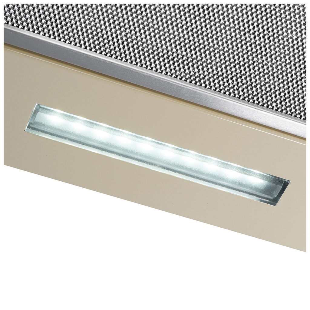 Корпус витяжки виконаний у білому кольорі, що додає елегантності та стильності вашій кухні. Світлодіодне освітлення з потужністю 1x5 Вт забезпечує яскраве та економне освітлення робочої зони, що сприяє комфортному приготуванню їжі у будь-який час доби.
