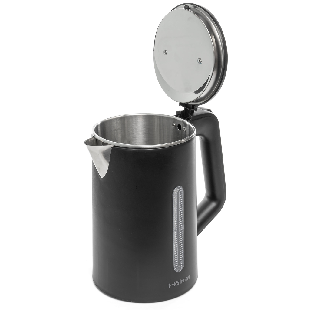 Електрочайник Holmer HKS-204D як візитна картка вашого смаку та стилю. Його гладкий, сучасний дизайн надає вишуканості будь-якому інтер'єру. Але це не лише чудовий предмет. Це також дуже практичний та безпечний. Чайник оснащений автоматичним вимкненням при закипанні та блокуванням увімкнення без води. Це означає, що ви можете не турбуватися про опіки або інші неприємності. Holmer HKS-204D також дуже ефективний. Його потужність 1500 Вт забезпечує швидке закипання води. Це означає, що ви зможете насолоджуватися гарячим чаєм або кавою за лічені хвилини. Але це ще не все. Чайник також має технологію подвійних стін. Це означає, що вона зберігає воду теплою протягом тривалого часу. Таким чином ви можете насолоджуватися своїм напоєм у будь-який момент, коли вам захочеться. Великого об'єму 1,8 л достатньо для приготування чаю або кави для вас, ваших близьких та гостей. Holmer HKS-204D – це ідеальний вибір для тих, хто цінує стиль, безпеку, ефективність та комфорт. Цей чайник стане справжньою окрасою вашої кухні та додасть їй нотки вишуканості та затишку. База живлення з поворотом на 360° дозволяє користувачам легко встановлювати чайник та обертати його. Отже, пристроєм з однаковим комфортом можуть користуватися як правші, так і шульги.