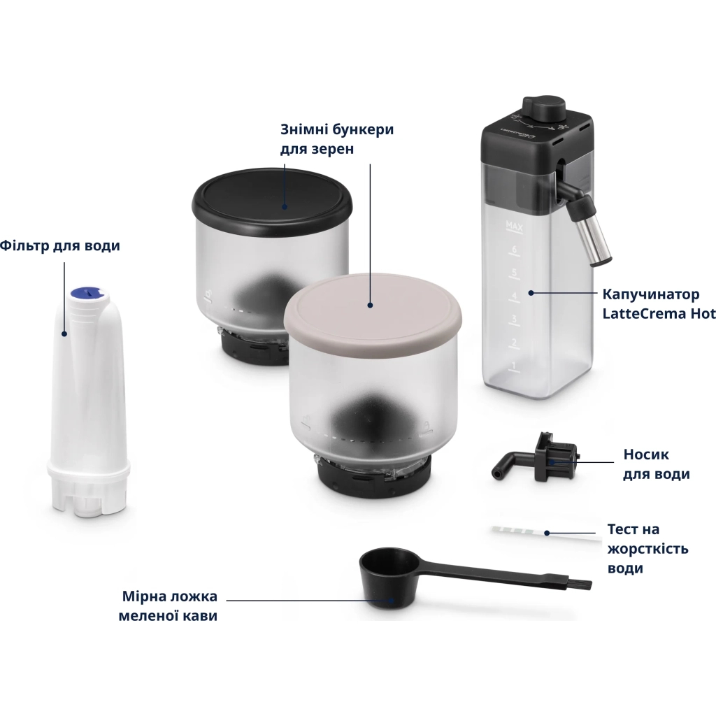 - LatteCrema Hot автоматично забезпечує насичену гарячу молочну піну з функцією автоматичного очищення одним дотиком
