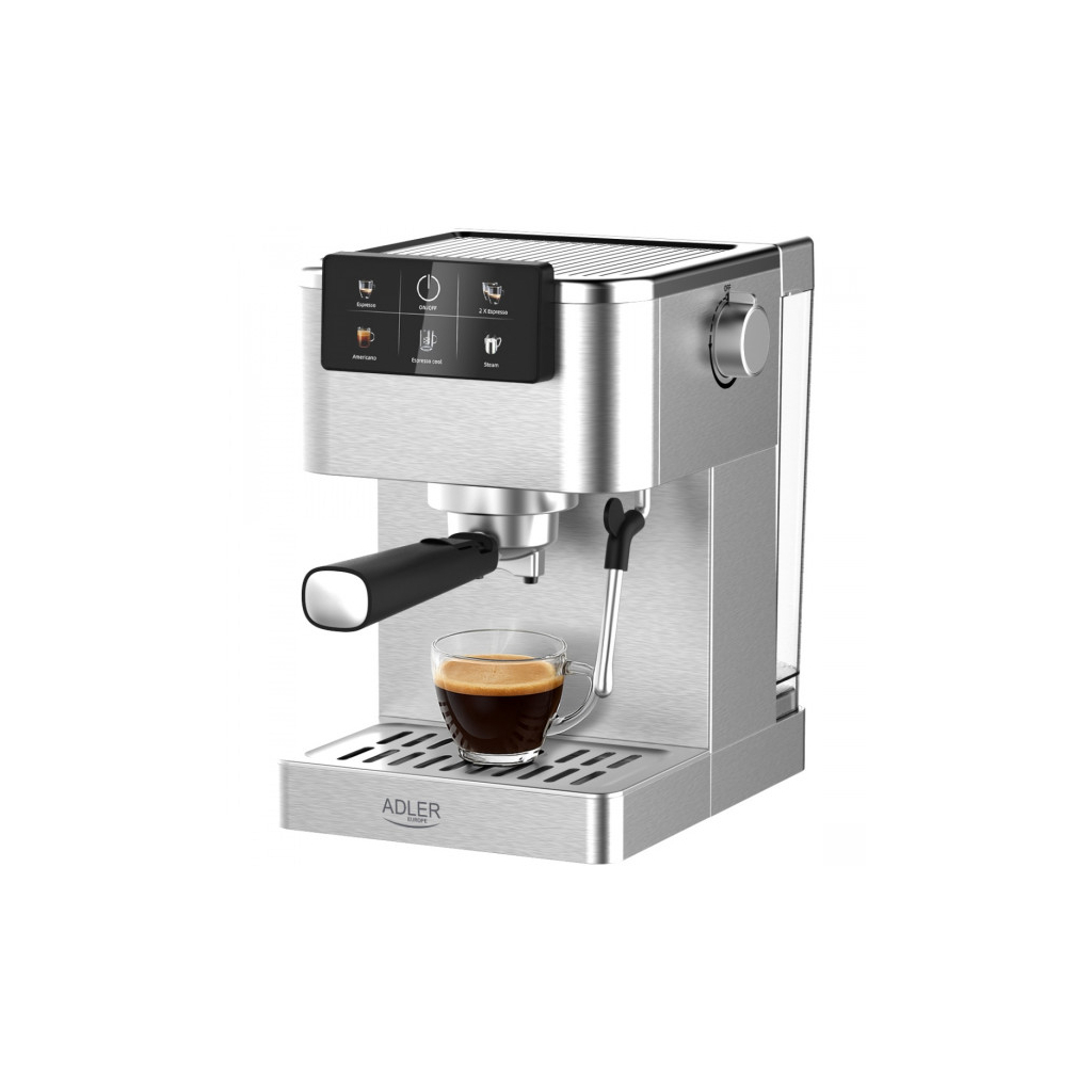 Кавомашина Adler AD 4390 підтримує різні функції: приготування еспресо, подвійного еспресо, еспресо з льодом, американо та спінювання молока. Сенсорна РК-панель керування дає змогу легко обрати необхідний режим роботи.