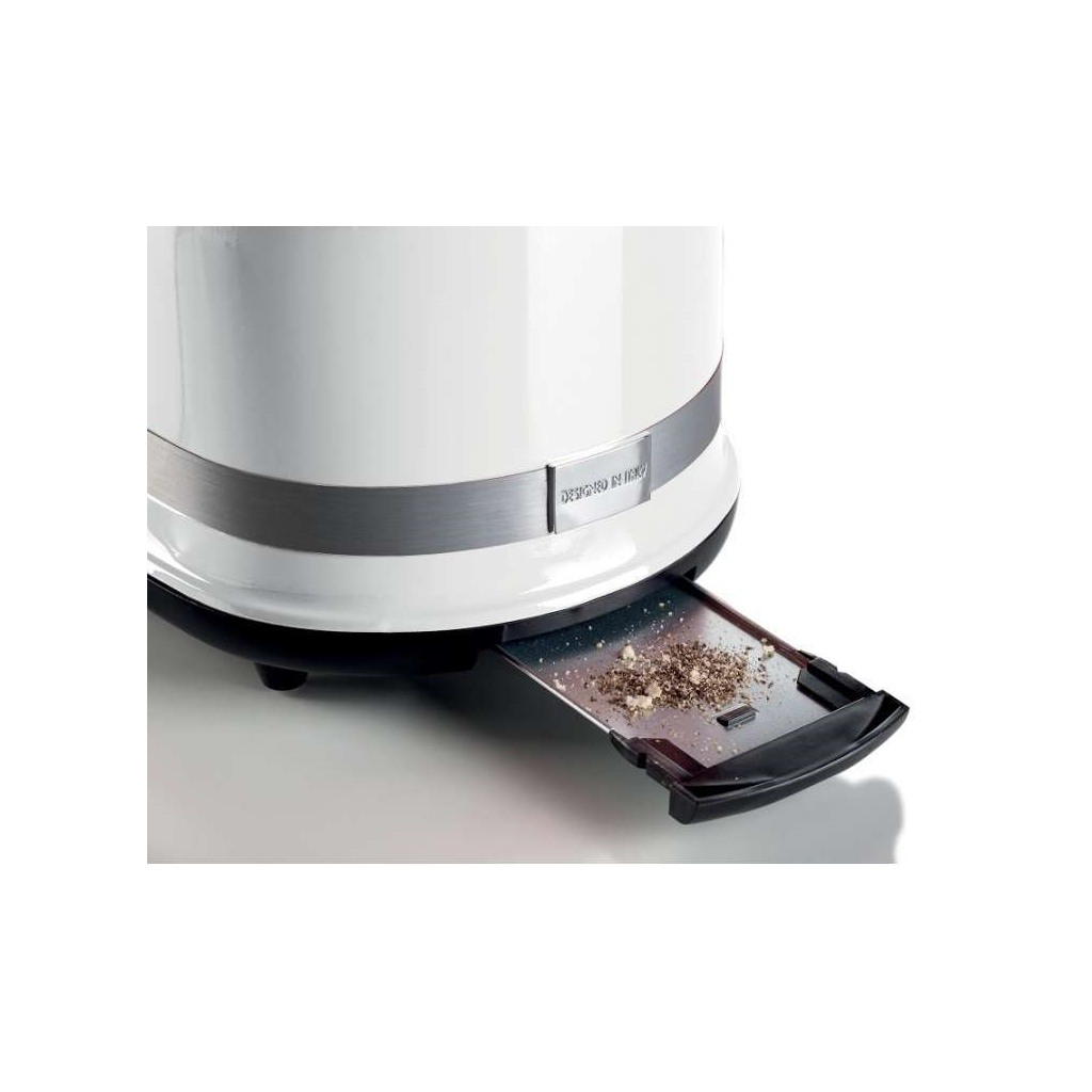 Оснащений щипцями для ідеального підсмажування хліба або сендвіча, з автоматичним викидом, знімним піддоном для крихт, 3 функціями та 6 рівнями підрум'янення, він являє собою об'єкт дизайну, який поєднує в собі естетику та функціональність.