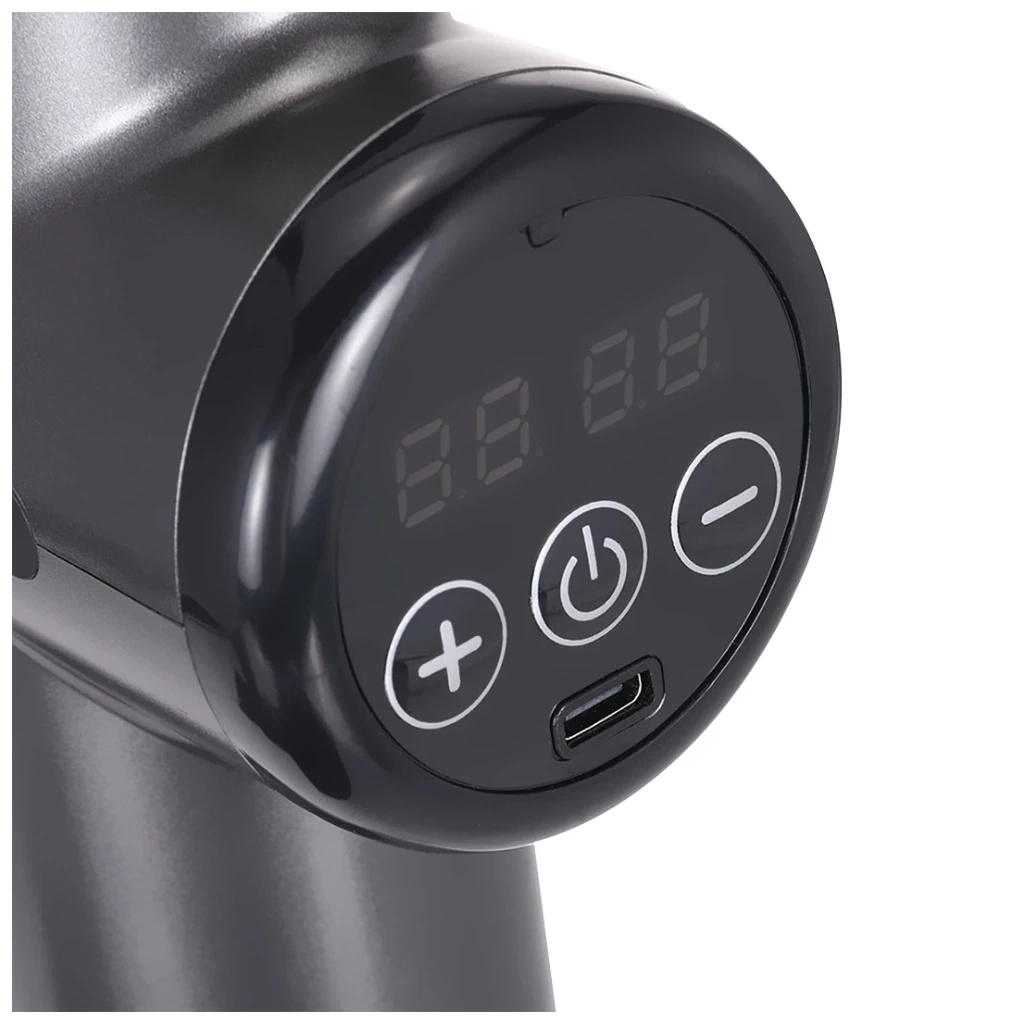 Пристрій комплектується 8 змінними насадками, що дозволяє працювати з усіма основними зонами тіла – від шиї та плечей до стоп. Потужність у 18 Вт забезпечує глибокий перкусійний вплив, а можливість регулювання інтенсивності робить масаж максимально індивідуальним.