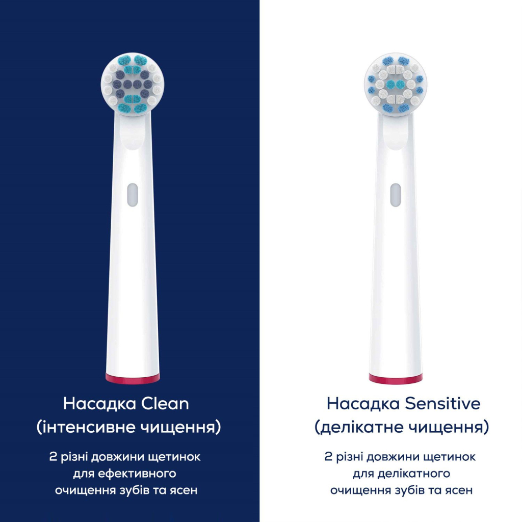 | Додатково: | заміна насадки кожні 3 місяці, 2 довжини щетинок для ніжного очищення та масажу ясен |