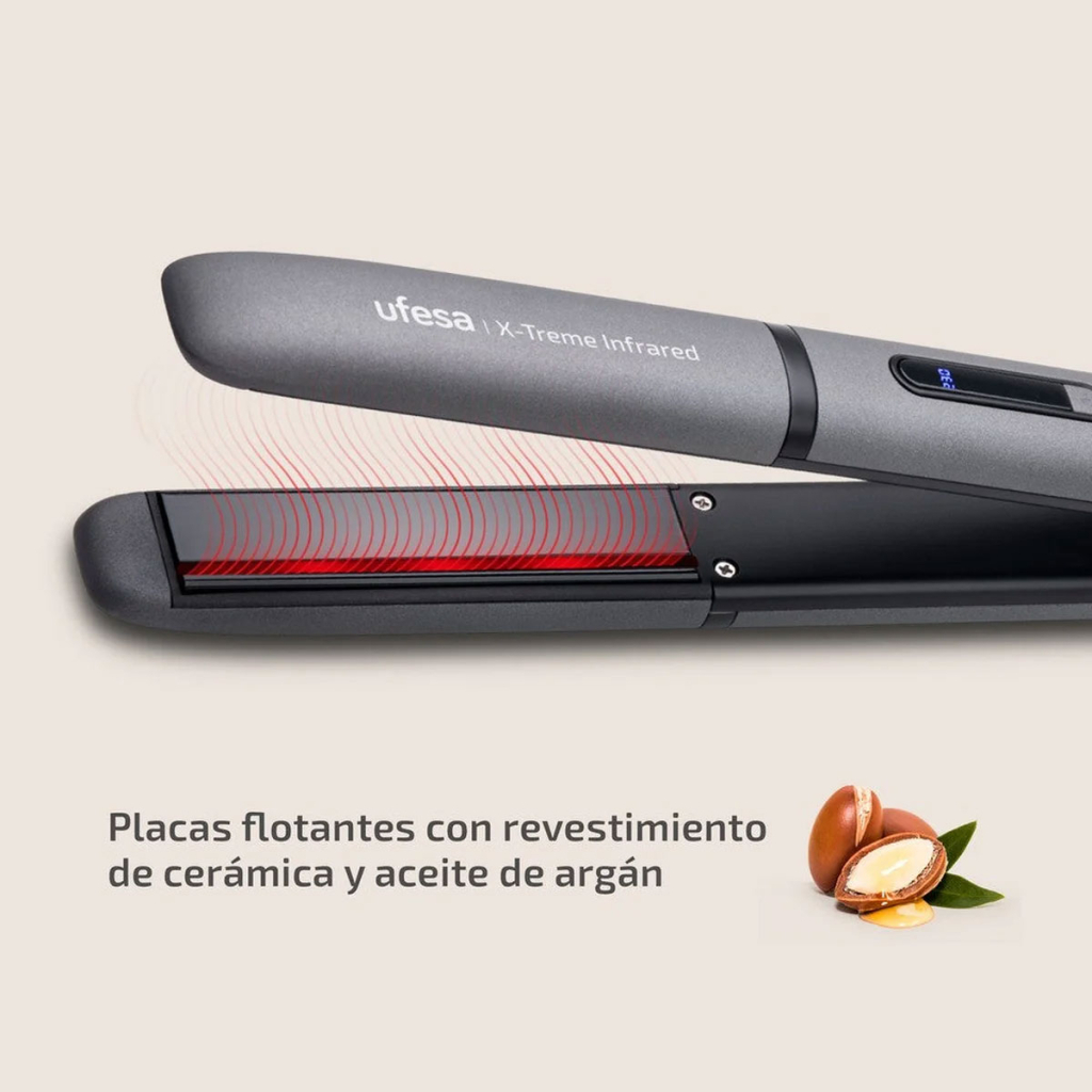 Інфрачервоний випрямляч X-Treme швидко випрямляє або завиває волосся. Він оснащений технологією X-Treme Infrared, яка регулює природний вміст вологи у волоссі, що забезпечує додаткове зволоження та захист. Керамічне покриття випрямляча з мікрокондиціонерами на основі арганової олії робить волосся блискучим і м’яким з кожним рухом.