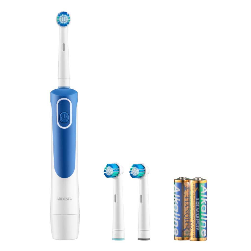 Електрична зубна щітка ARDESTO працює зі швидкістю 4 500 об./хв, забезпечуючи ретельне очищення зубів і ясен. Якісні щетинки DuPont і Pedex середньої жорсткості ефективно видаляють наліт, а їх знебарвлення слугує індикатором зношування. Для зручності передбачено 2-хвилинний смарттаймер, який допомагає дотримуватися рекомендованого часу чищення. Пристрій має клас водостійкості IPX4 і працює за допомогою двох батарейок AA (є в комплекті). Також у наборі: три змінні насадки й захисний ковпачок, що робить щітку практичним і надійним вибором для щоденної гігієни. Характеристики