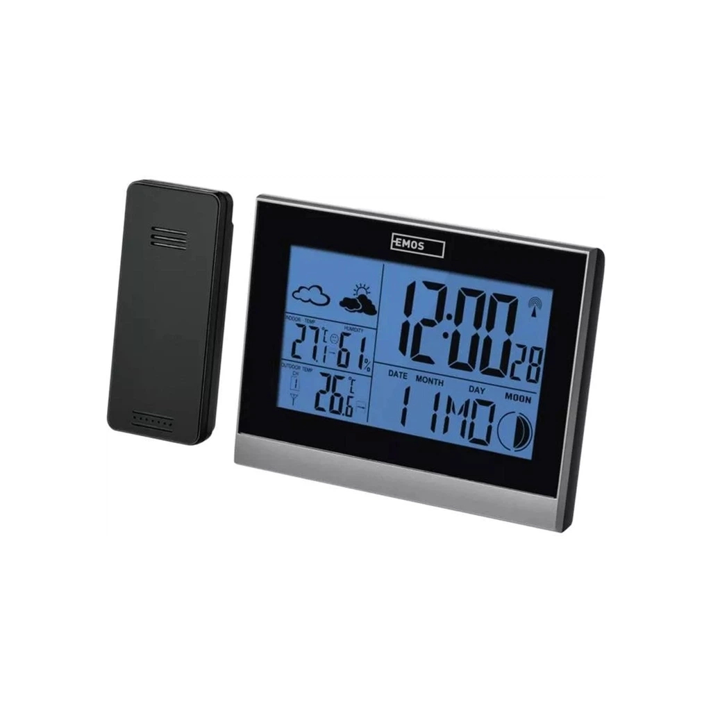 Бездротова метеостанція E3070 від чеського виробника EMOS. Бездротова, настільна метеостанція з чітким цифровим дисплеєм та світлодіодною підсвіткою. Надає актуальну інформацію про поточний час, дату, температуру, вологість, фази місяця й насамперед прогноз погоди, доступний на подальші 12-24 години. Температура вимірюється як у приміщенні, і на вулиці. Обладнана бездротовим погодостійким датчиком, з дальністю приймання сигналу до 30 м, може бути поєднана з такими 3 датчиками, і дані з них легко зображаються на дисплеї.