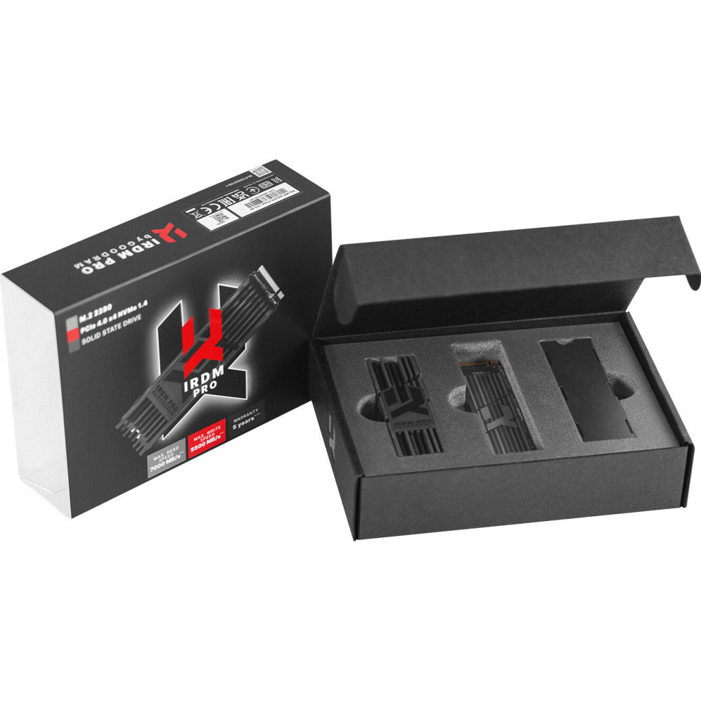 SSD IRDM PRO M.2 продається в упаковці, присвяченій преміальному сегменту бренду IRDM. У середині упаковки виробник помістив диск, окремий радіатор та монтажний комплект, що складається з пластини, гвинтів та невеликої викрутки.