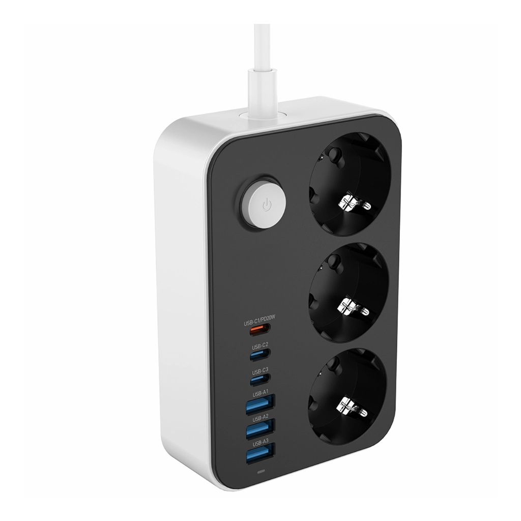 Мережевий фільтр живлення ColorWay CW-CHЕ36B, 3 розетки/6USB Black 1.8M (CW-CHE36B)
