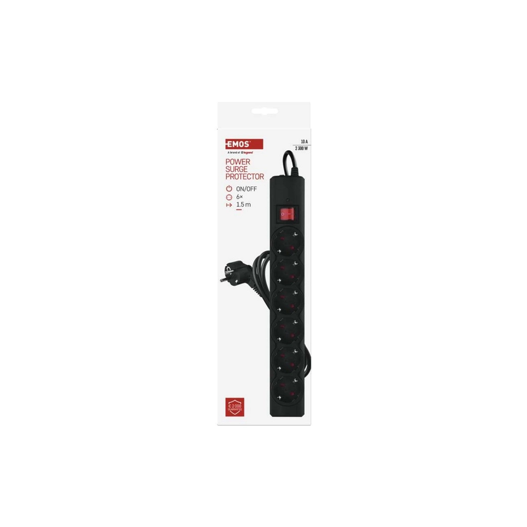 Мережевий фільтр EMOS P54218 із захистом від перенапруги має 6 розеток і кабель довжиною 1.5 м. Це надійне рішення для одночасного підключення кількох електроприладів удома чи в офісі.