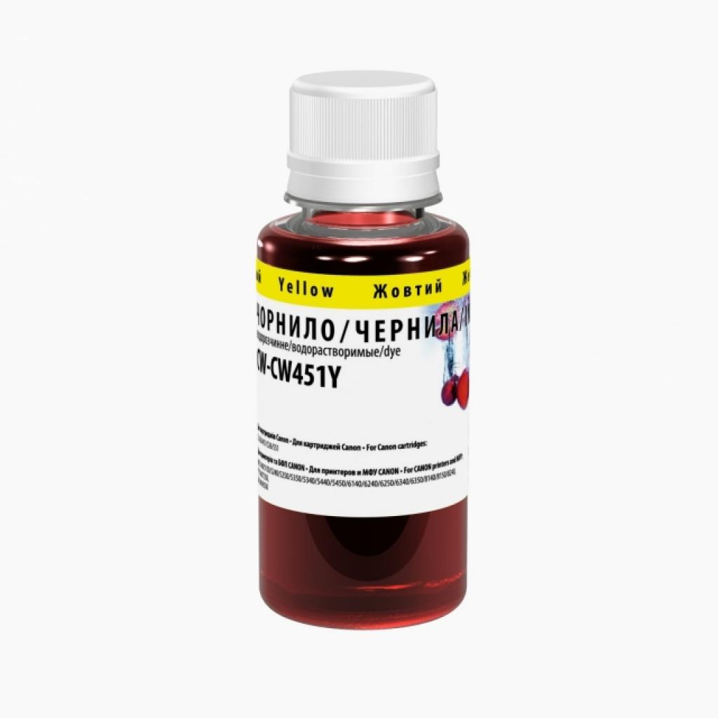 Розфасовані чорнила ColorWay Canon CLI-451 100мл Yellow (CW-CW451Y01) в зручній світо і вологозахисної упаковці, яка дозволяє повністю зберегти всі властивості чорнила. Чорнило ColorWay Canon CLI-451 100мл Yellow (CW-CW451Y01) відрізняються високою якістю й успішно пройшли тестування в сервісній лабораторії ТМ ColorWay. Характеристики