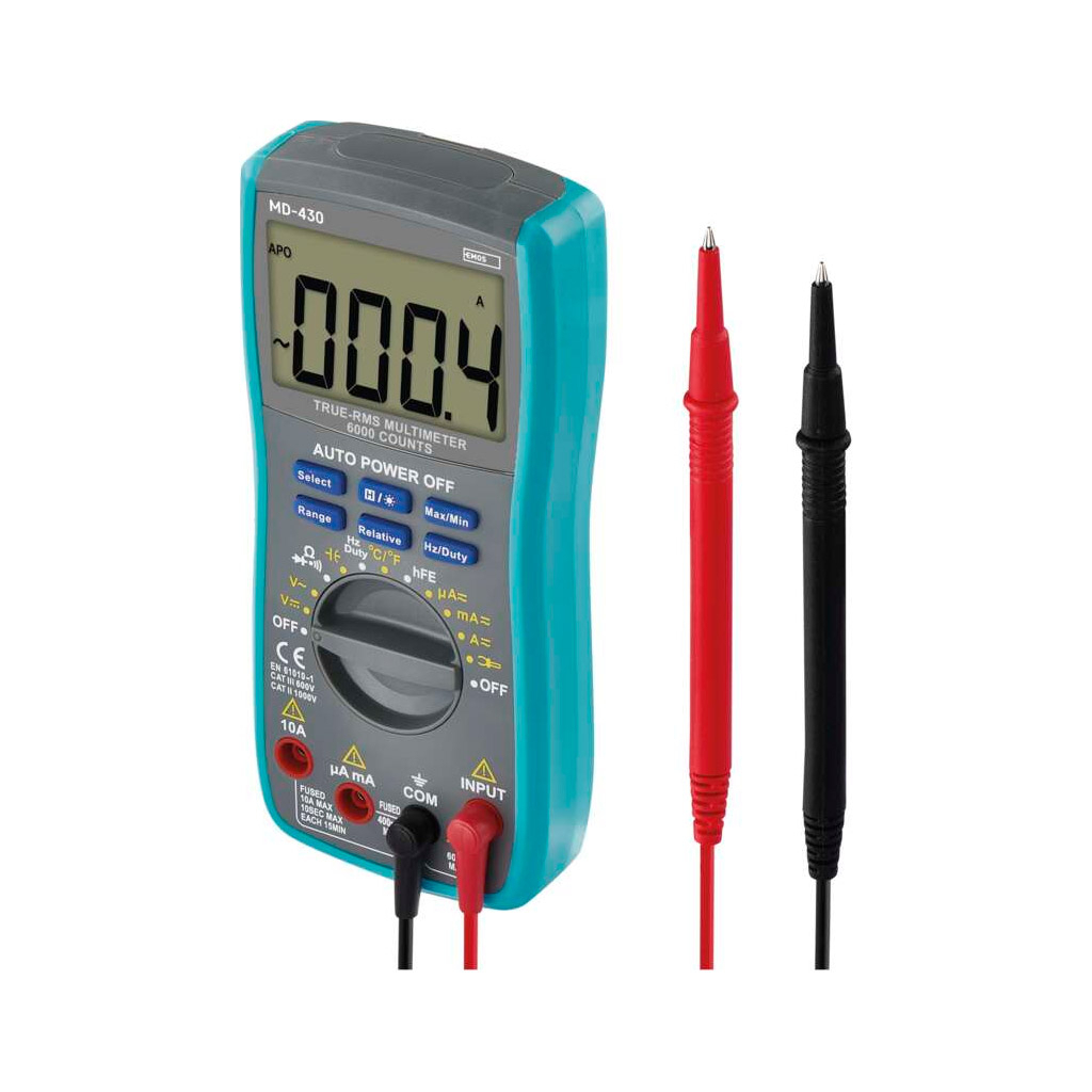 | Вимірювання | напруга (V), тестування діодів, тестування транзисторів, температура (T), опір (R), прозвонка ланцюга, частота (F), струм (А) |