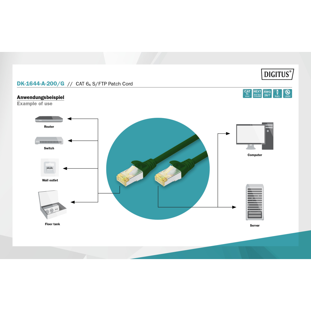 Патч-корди DIGITUS® категорії 6A класу EA виготовлені та протестовані відповідно до специфікацій ISO/IEC 11801 та DIN EN 50173 категорії 6 A. Вони гарантують відповідність інстальованої кабельної системи вимогам специфікацій каналів ISO та EN і забезпечують оптимальний рівень продуктивності кабелів DIGITUS® категорії 6A. Характеристики