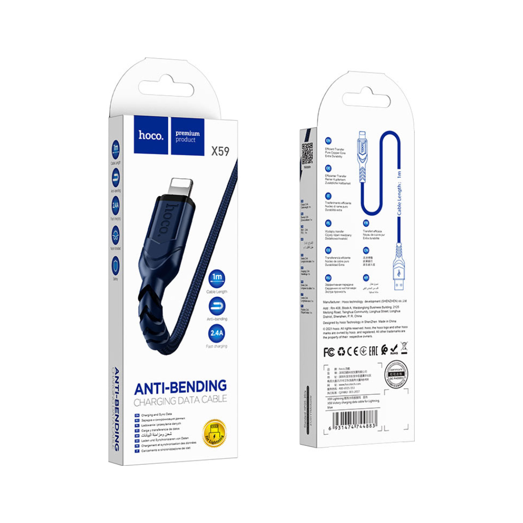 Модель | USB 2.0 AM to Lightning 1.0m 2.4A nylon X59 blue |
