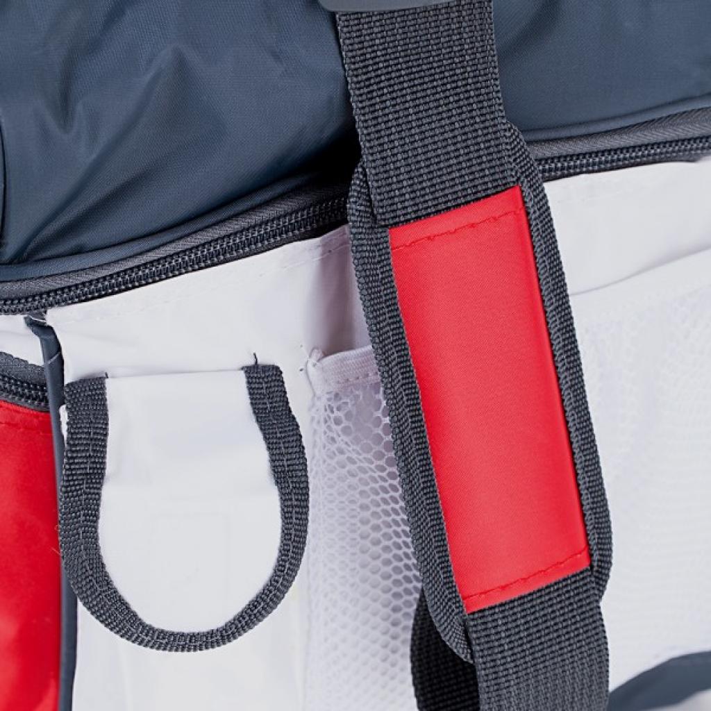 Особливості сумки: зовнішній матеріал 70D нейлон; внутрішня підкладка зроблена із зносостійкого полівінілхлориду і в 6 разів мыцныша в порівнянні зі стандартними ізотермічними сумками; нова система термоізоляції - безшовна, 100% водонепроникний термоізоляційний шар спіненого поліетилену, який забезпечує підтримку стабільної температури.