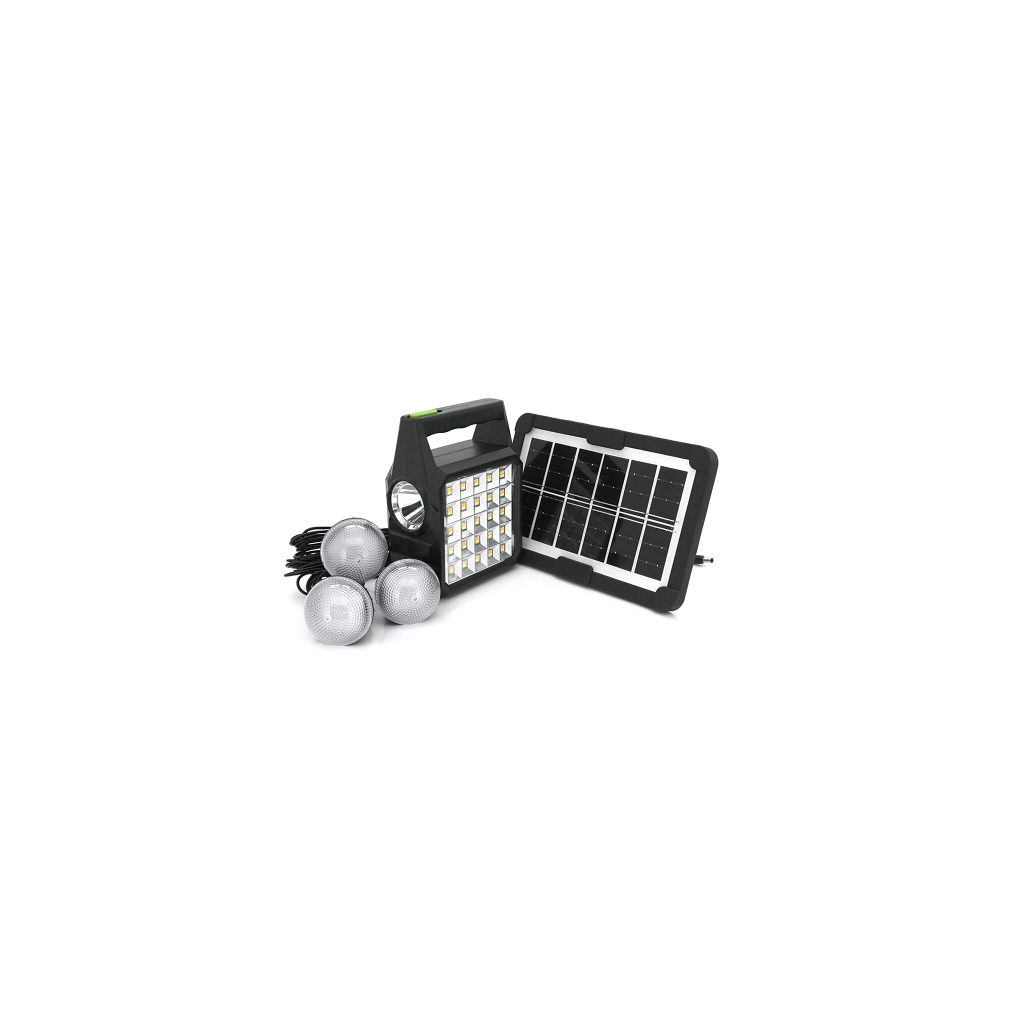 Опис: Переносний ліхтар GD-105+ Solar - це зручний та функціональний пристрій, який підходить для використання як удома, так і на природі. Він оснащений вбудованим акумулятором ємністю 10000mAh, що робить його чудовим варіантом для заряджання пристроїв далеко від розетки. Ліхтар має 1+1 режим освітлення та 3 лампочки потужністю 3W, що забезпечують яскраве та довговічне освітлення. Також він оснащений 2USB виходами, що дозволяє одночасно заряджати два пристрої, джерелом живлення є сонячна енергія та USB вихід. Ліхтар представлений у чорному кольорі та упакований у коробку.