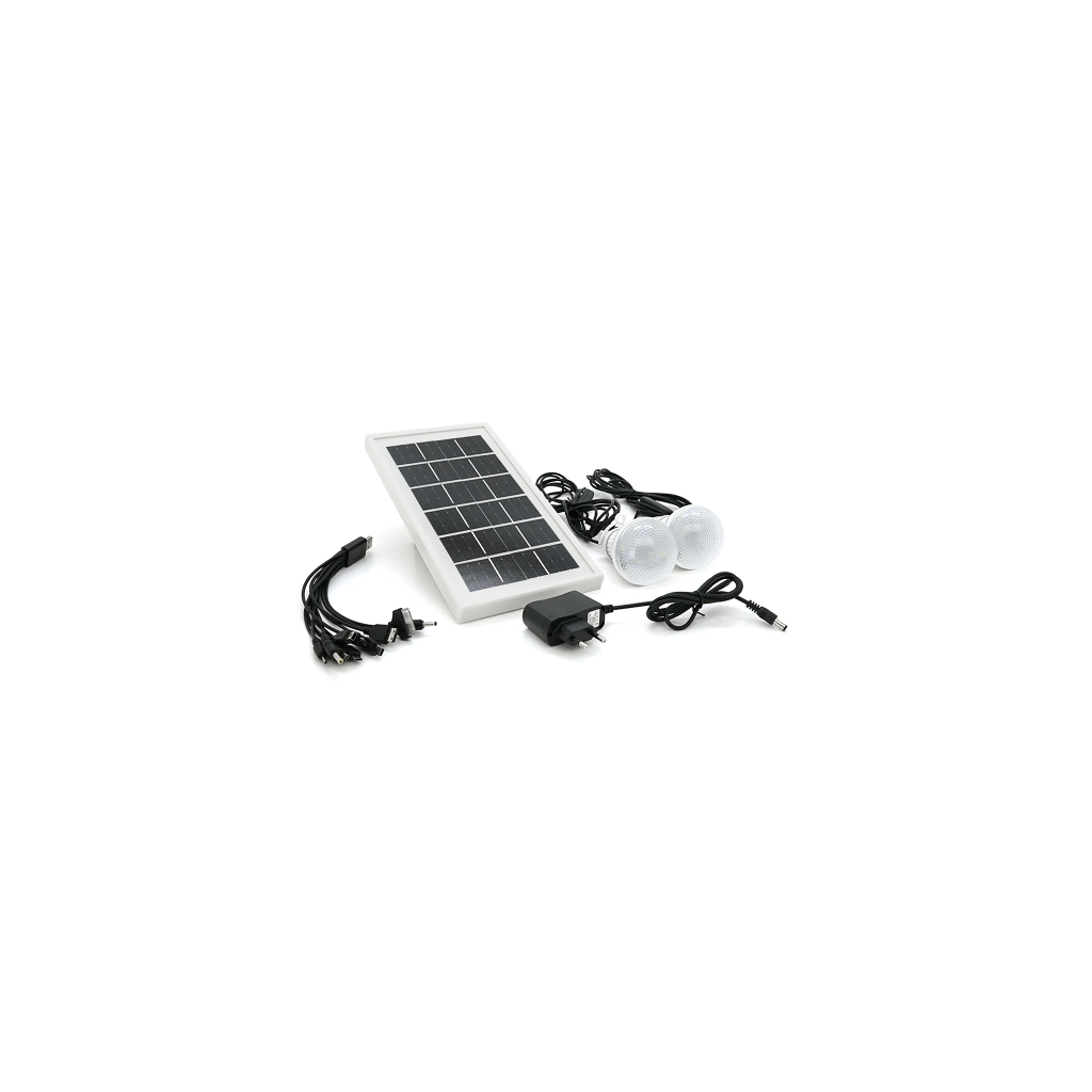 Комплектація: ліхтар, ремінець на плече, ЗУ 220, універсальний USB кабель для зарядки, 2 світлодіодні лампи з вимикачами, сонячна панелька