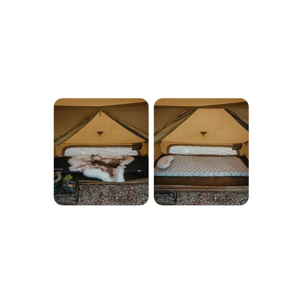 Naturehike CNK2450WS026 — намет з функціональною формою-трансформером, яку можна змінювати відповідно до погодних умов. Конструкція складається з основного намету на одного відпочивальника та зовнішнього тенту. Повні розміри у встановленому вигляді — 250х220х170 см. Тент можна використовувати як навіс для зони відпочинку в тіні або облаштування польової кухні. Також його можна опустити, утворивши просторий ізольований тамбур для зберігання спорядження.Намет розрахований на використання протягом 4 сезонів завдяки зносостійким матеріалам та продуманому дизайну. Основний матеріал — полікоттон TC (65% поліестер, 35% бавовна), що поєднує міцність синтетики та повітропроникність натурального волокна. Матеріал легко очищається, стійкий до розривів та має природну вентиляцію.