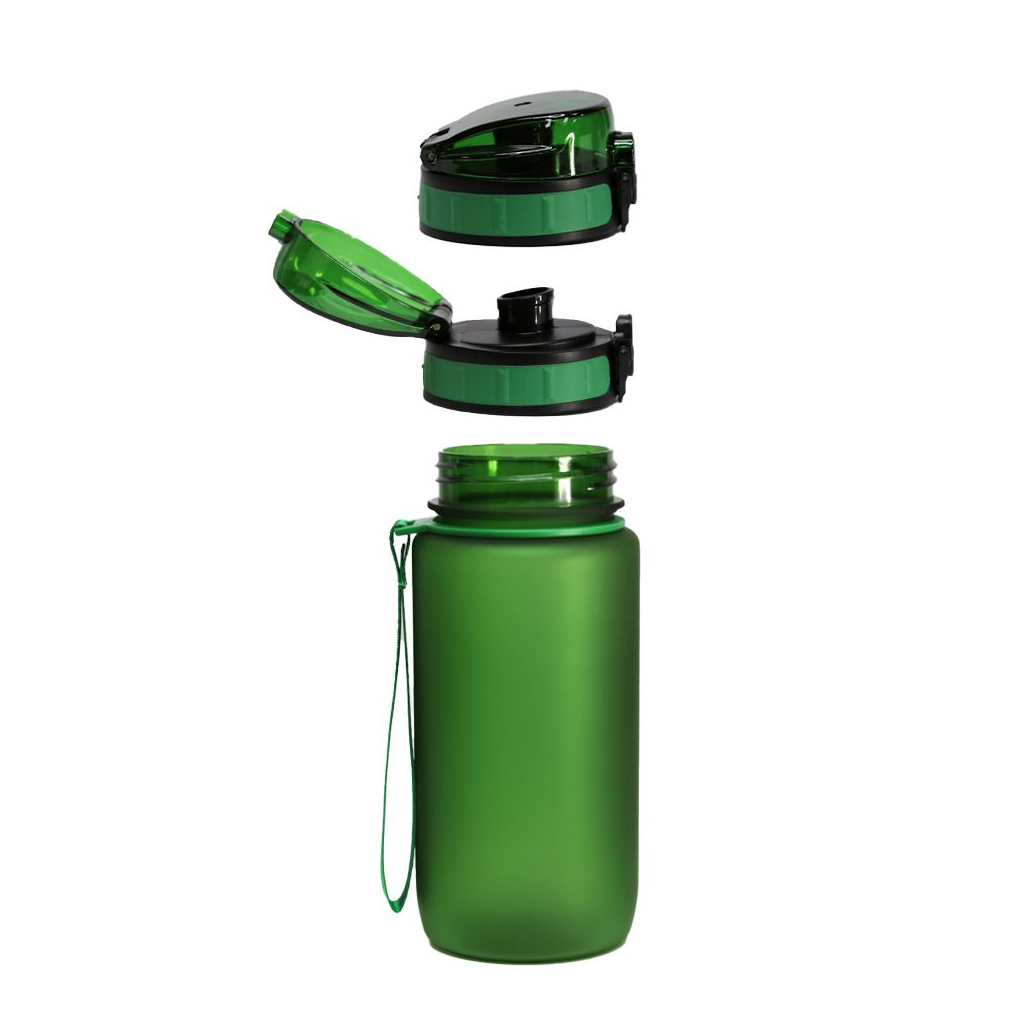 Кришка оснащена кнопкою з фіксатором, що запобігає випадковому відкриттю під час транспортування. Пластиковий носик для пиття з відкидною захисною кришкою забезпечує гігієнічність та зручність під час використання. Матове покриття корпусу забезпечує приємне тактильне відчуття та стійкість до подряпин. Оснащена міцним вбудованим нейлоновим ремінцем для комфортного носіння. Завдяки широкому горлечку пляшка легко миється та швидко наповнюється.