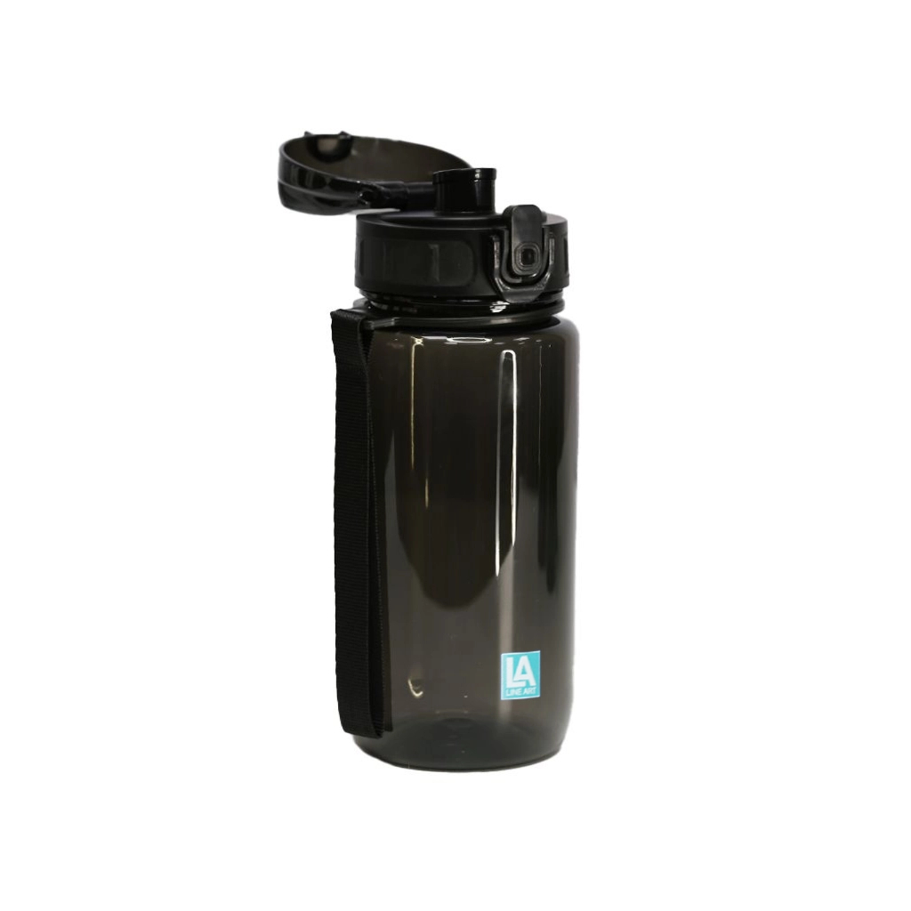 Кришка оснащена кнопкою з фіксатором та пружиною, що запобігає випадковому відкриванню та забезпечує надійний захист від протікання. Пластиковий носик для пиття з відкидною захисною кришкою забезпечує гігієнічність та зручність під час використання у спортзалі, офісі чи на вулиці. Вставки на боках кришки забезпечують комфортне відкривання навіть мокрими руками. Завдяки широкому горлечку пляшка легко миється та швидко наповнюється.