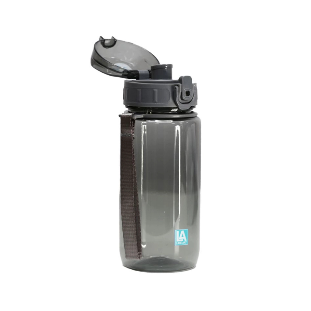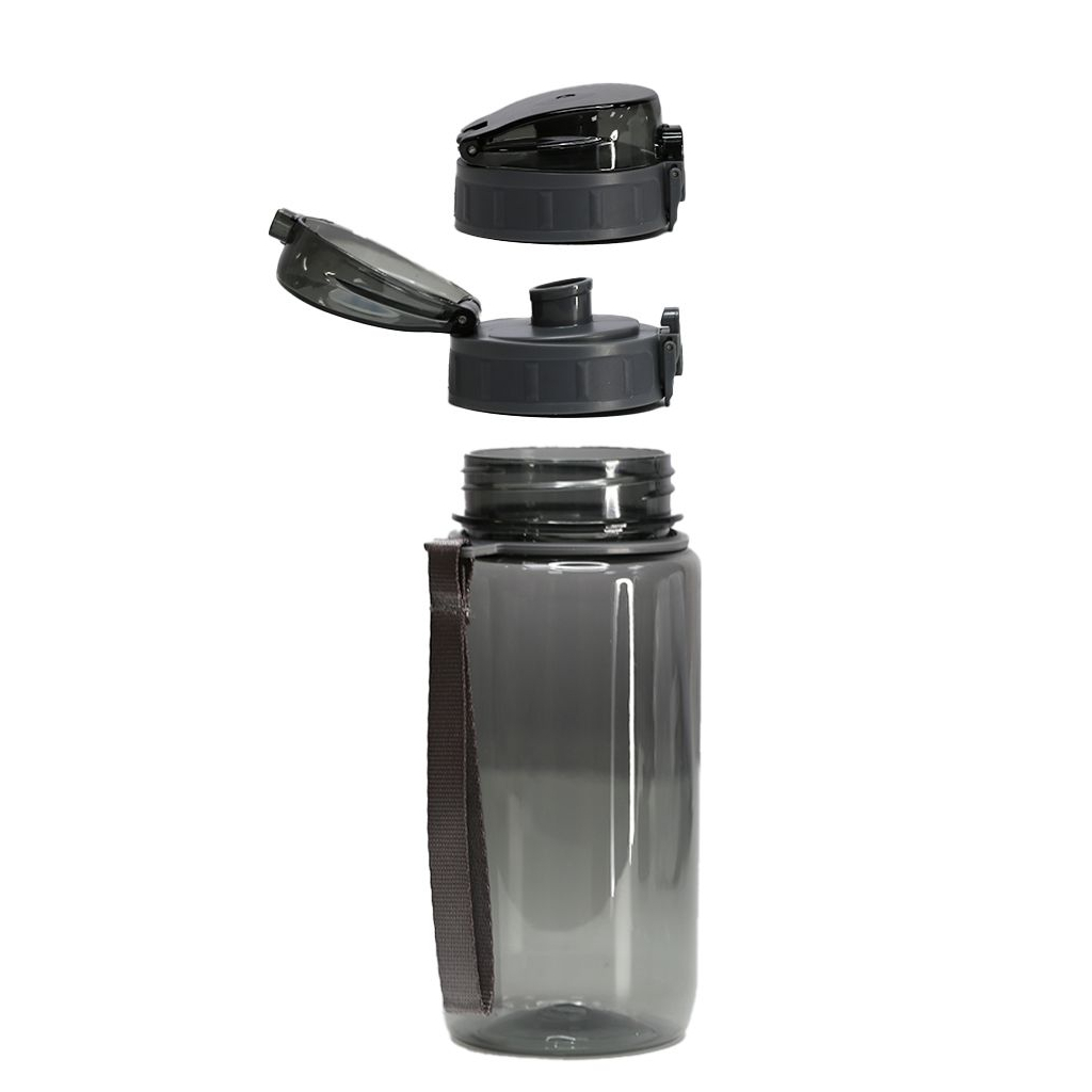 Кришка оснащена кнопкою з фіксатором та пружиною, що запобігає випадковому відкриванню та забезпечує надійний захист від протікання. Пластиковий носик для пиття з відкидною захисною кришкою забезпечує гігієнічність та зручність під час використання у спортзалі, офісі чи на вулиці. Вставки на боках кришки забезпечують комфортне відкривання навіть мокрими руками. Завдяки широкому горлечку пляшка легко миється та швидко наповнюється.