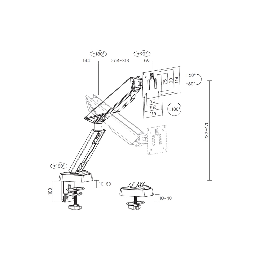 Особливості: | з регулюванням по висоті, для кріплення вигнутих екранів, з прихованим укладанням дротів, обертання: ±180°, з регулюванням глибини |