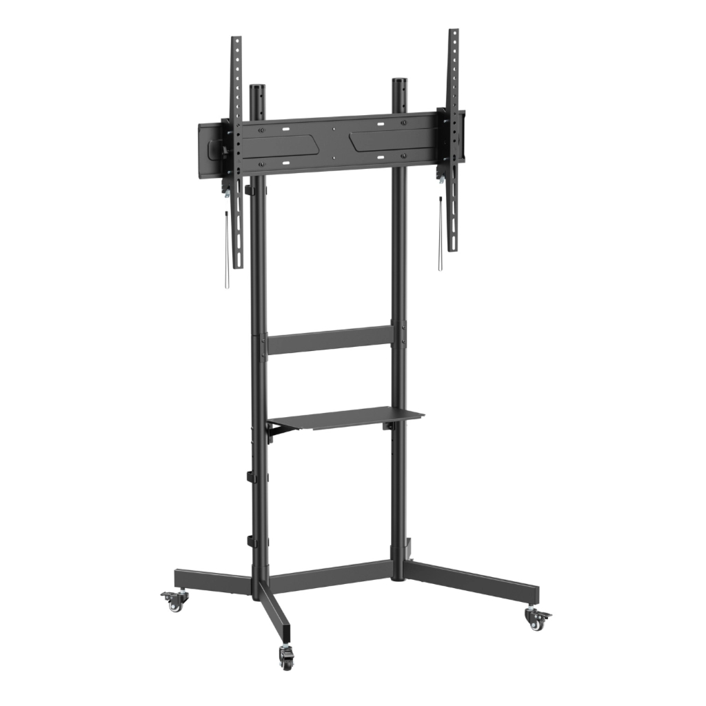 Універсальна підлогова стійка для телевізора ITech T1044TE — це зручне та мобільне рішення для більшості LCD і плазмових телевізорів із діагоналлю від 55 до 100 дюймів.Модель обладнана маневровими коліщатками, що дозволяє легко переміщувати стійку з місця на місце без зайвих зусиль. Також стійка ITech T1044TE оснащена регулюванням по висоті, що дозволяє налаштувати оптимальний рівень розташування телевізора залежно від потреб користувача та умов приміщення. Поличка в комплекті допоможе зручно розташувати додаткові прилади.